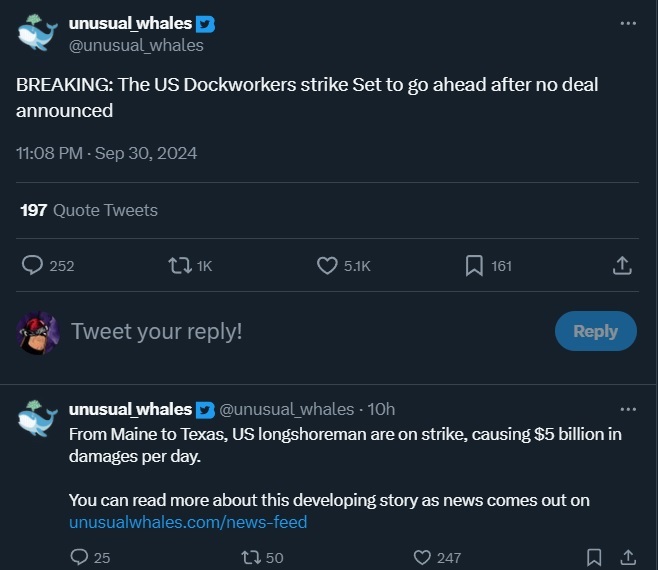| 01.October.2024 11:41 | boxy | dock workers in the US went on strike today |