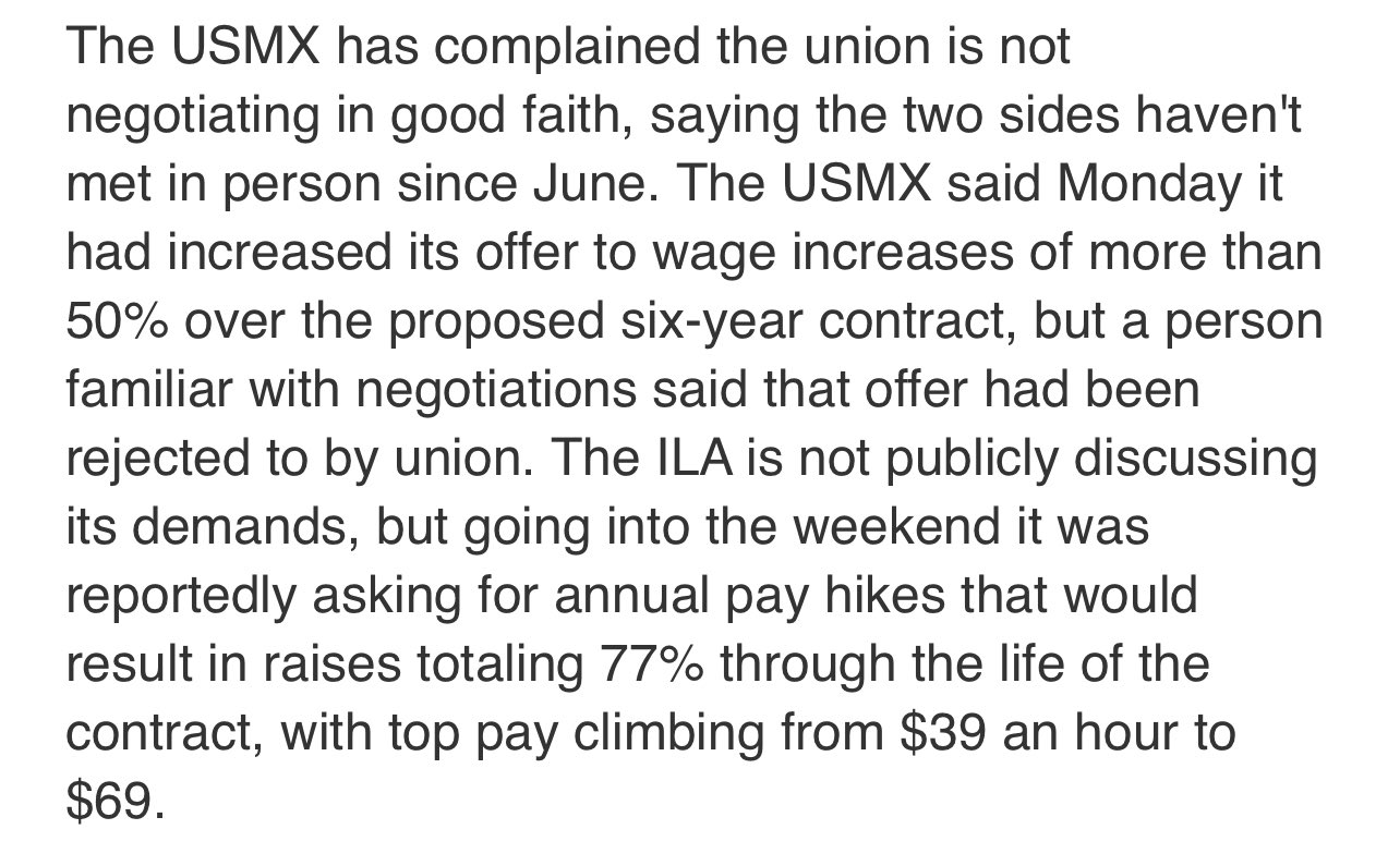 lmao![]() ![]() >fox news suck my dick. it's the first one i found ![]() it's a strike over them (probably) losing their jobs to automation. for fair compensation and all that. the union leader, Harold Daggett, has told the us govt the ILA Union would "cripple it all" to prove a point if the govt and union could not agree on a contract - and they haven't. B A S E D ============ [edit 12:06pm] >offered to increase wages more than 50% >rejected LOOOOOOOOOOOOOOOOL ![]() • ABC philadelphia - "Dockworkers at Eastern and Gulf ports go on strike, a standoff risking new shortages" [edit 12 OCT 2024] evidently it didn't last a fucking day and they have suspended the strike until january "to allow time to negotiate." lame. |