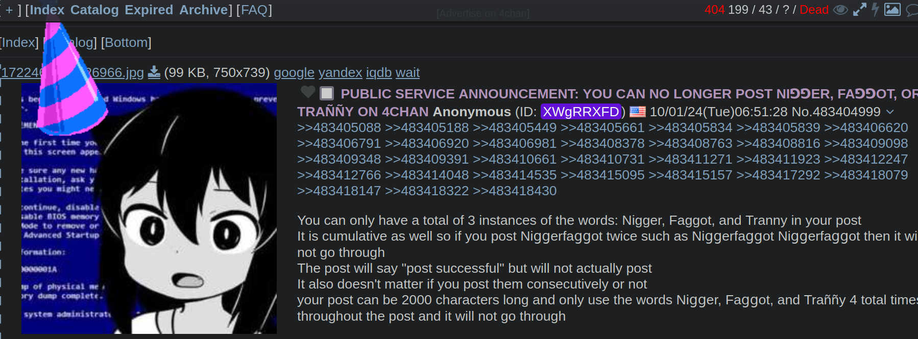![]() 5 Minutes Later![]() Retards can't even censsor words correctly. Day Or So Later![]() Jannies being lazy, kek. |