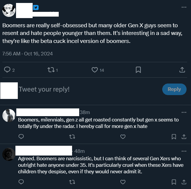 ![]() it's not that any gen-x (that i know) hates anyone under 35. it's they dislike kids being absolutely sure of themselves. i will never, ever listen to anyone who was was a wee baby when i was already a teenager. especially when they talk with their full chest about things or issues they were never privy to. the history books don't tell a full story. gen-x largely wants to be left alone to their own devices. because no one is an authority on [thing/issue]. it has taken most of my life to realize the people i looked up to, or were older by 10+ years, had no fucking idea what they were doing and were just winging it. if gen-x has any children, they love them. it's other people's shitty kids which give them a bad name. because, like above, the shitty kids may think they are experts in [issue]. but in reality, they are just talking shit on the internet from the safety of their parent's cul-de-sac neighborhood. which i can relate to, but they're taking it the extra mile and regurgitating what they read and hear into the real world. most of the time being wrong, but absolutely sure they are right. boomers are easy. most of them had a harsh life and worked their asses off, hopefully instilling some order to their children. but most gen-x children were not given guidance and had to figure it out. sometimes hard lessons were learned from first-hand knowledge and/or experience. turns out what they were told (or not told) was very wrong from someone who didn't know shit about shit. some boomers kids expect to be taken care of when they are in dire straits. true to a degree. everyone deserves a little help. expecting help or a handout is where boomers draw the line. get off my lawn you fucking hippy and get a haircut |